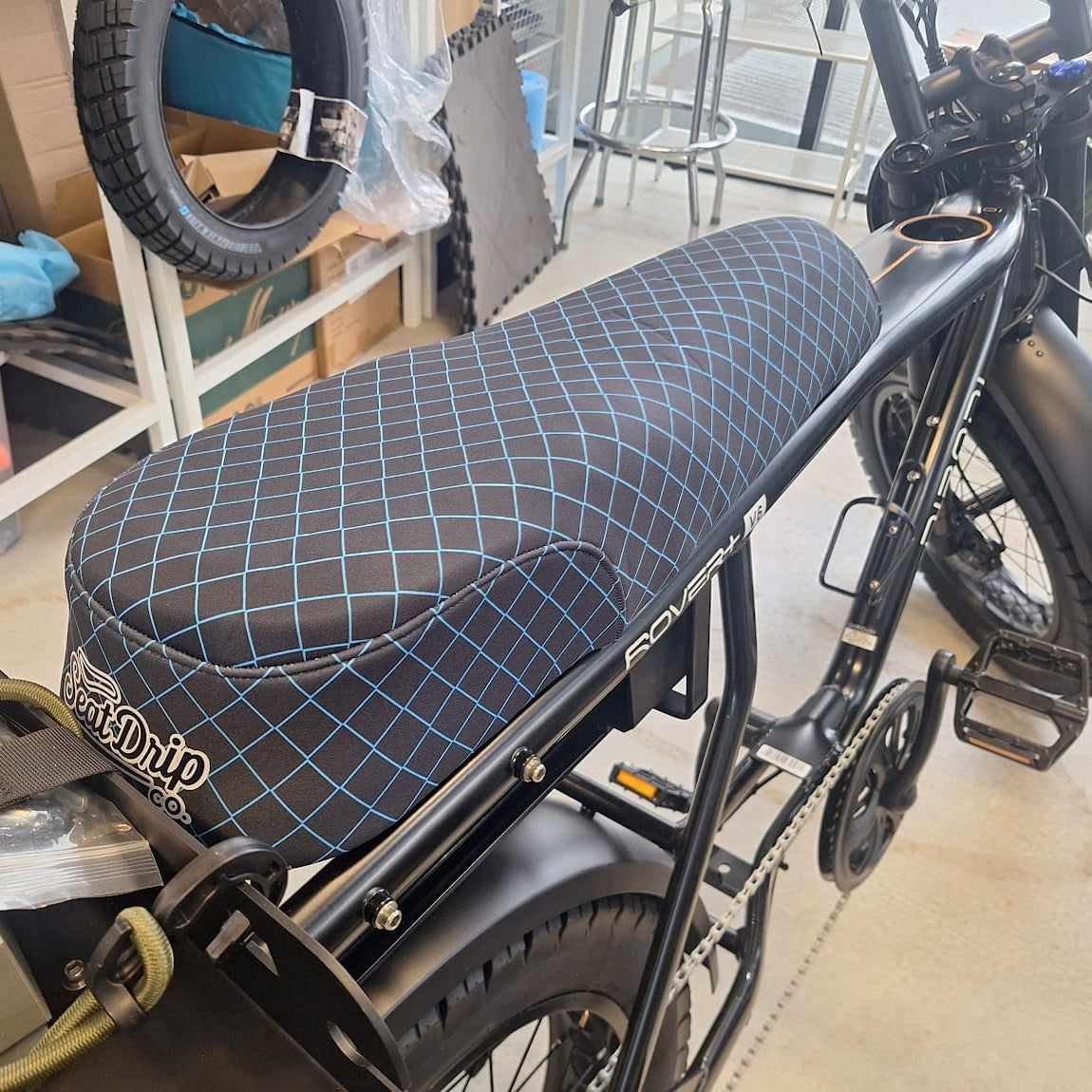 Bring sharp style to your ride with the Diamond Aqua Seat Cover. Featuring a bold diamond pattern in crisp aqua blue against a black background, this design delivers a clean, geometric aesthetic with street-smart flair.