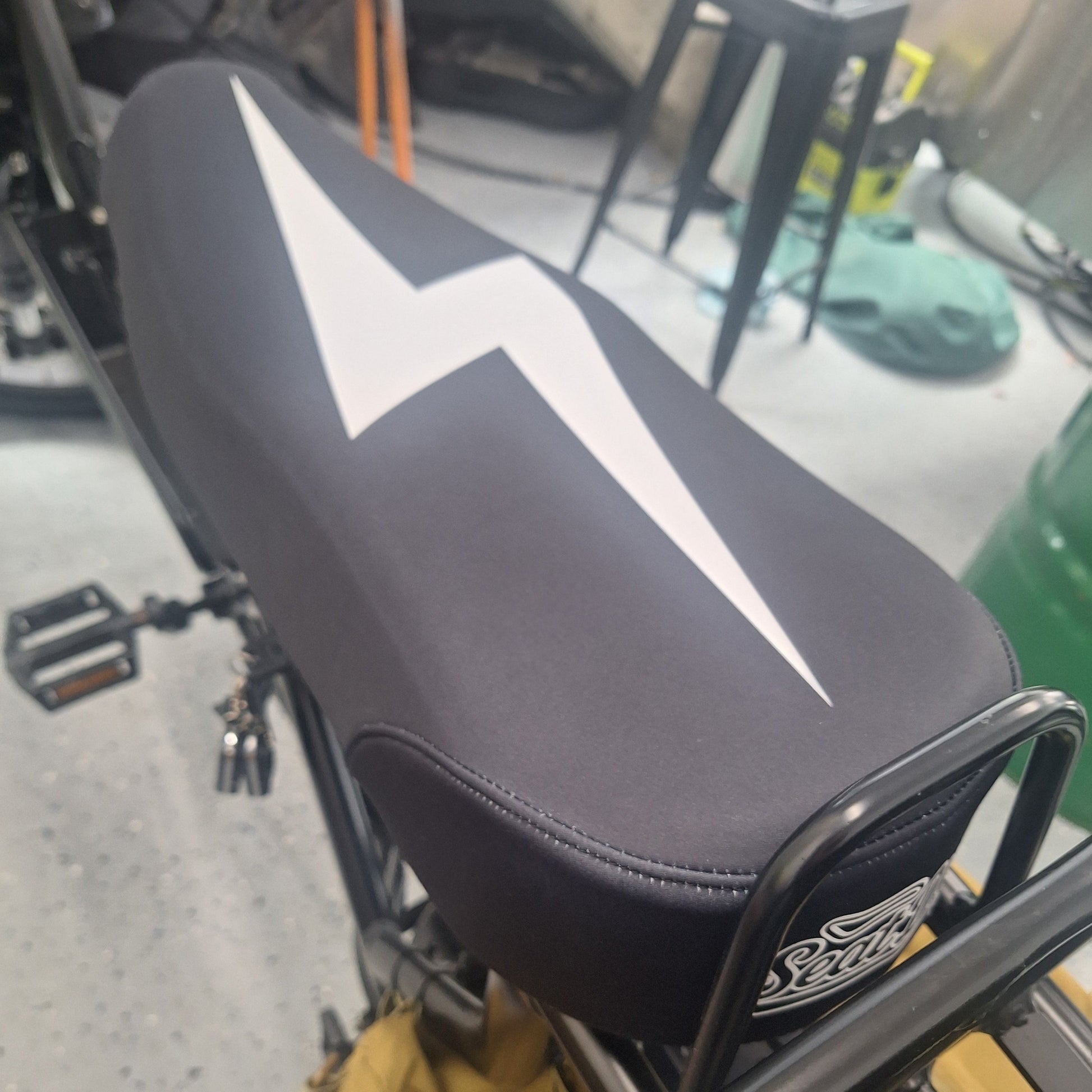 Go full stealth mode with the Midnight Black Bolt Seat Cover – a bold, minimalist upgrade for riders who prefer a sleek, all-black look. Designed with a striking white lightening bolt and a smooth matte finish, it’s the perfect combo of style and protection.